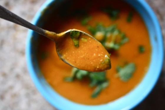 | Curried butternut and red lentil soup, from http://www.eatliverun.com/ |
