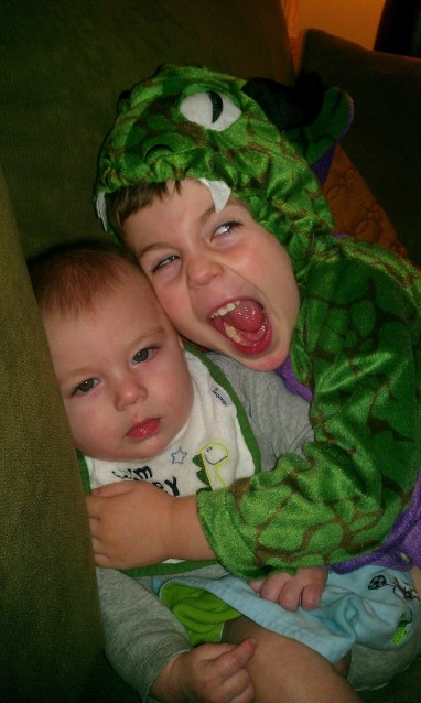 Just now I asked ONE, “Why are you digging your knees into me?!” and he said, “Because I love you! And you’re comfy.”