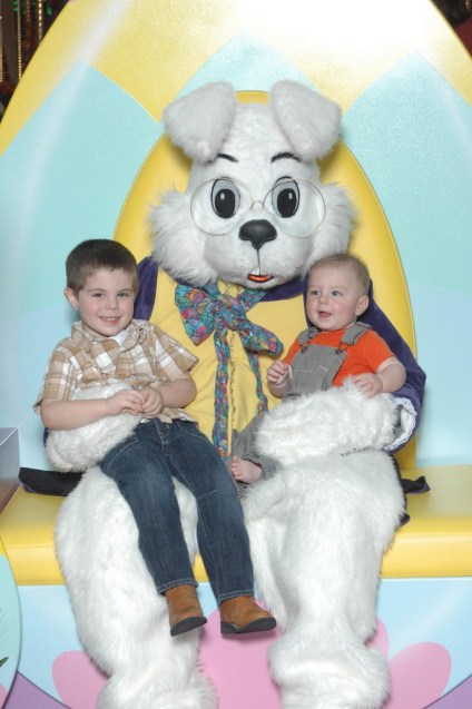 After several days of badgering, I finally admitted to ONE that this was not the real Easter Bunny. Just a person in a rabbit costume.