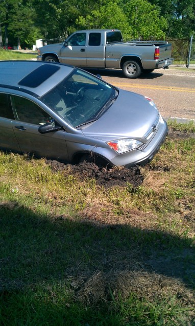 I got stuck. I ran off the shoulder and sank into mud, freaked out, spun the tires and sank even deeper. People stared. A sherrif stopped and yelled at me: “What were you doing?!” And I said, “Officer, I have to pee. Like really bad. And now I’m stuck …”