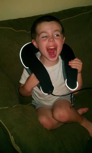 ONE has spent his whole day trying his best to undo what we do. Here he is taking a little break with a neck massager.
