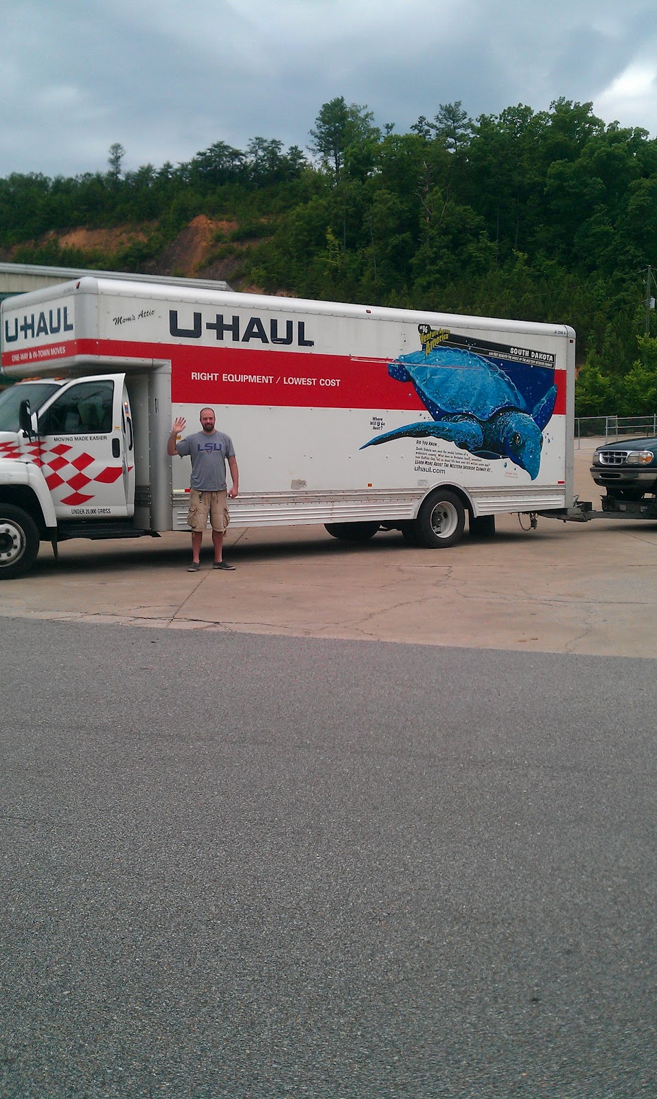 We have a LOT of stuff. I wish I could explain the enormity. All I can say is, it took a truck this size, plus two carloads, to get it all to Baton Rouge. If you look really closely, you can see Husband.