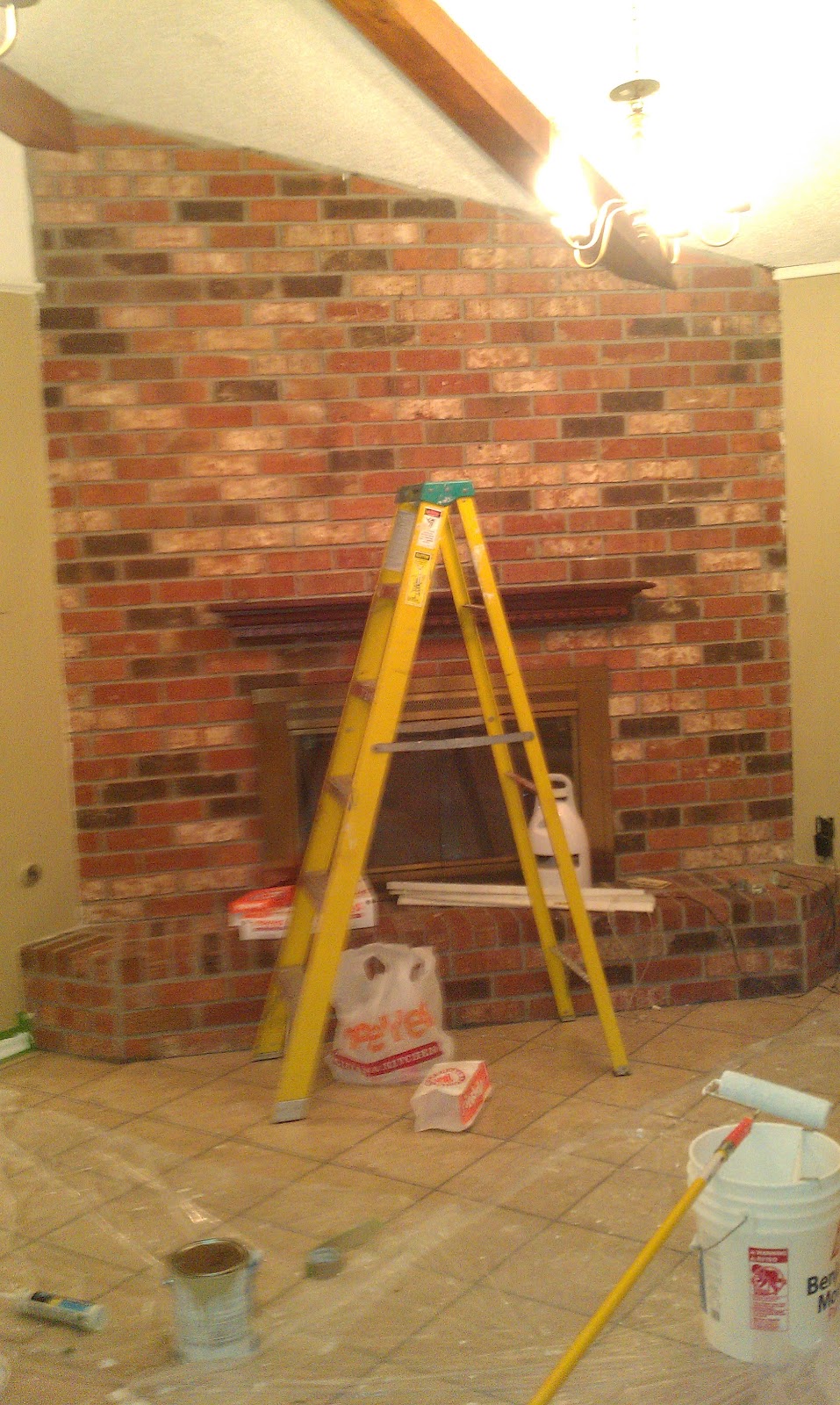 Here is Husband, painting at our new house. He was delirious at this point. The smile is not real.