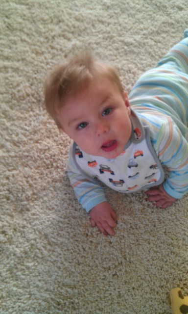 Then he started saying “bye-bye” and waving his little hand. Now he lights up and starts clapping and saying “bat” when he sees the bathtub. He says something that sounds like “ba-ba” for bottle. And just this morning, I took him in to say good morning to his daddy and I swear to you he smiled and said “hi dada.” Husband and I gasped. Thank goodness I wasn’t by myself when it happened or I would have brushed it off as my imagination.