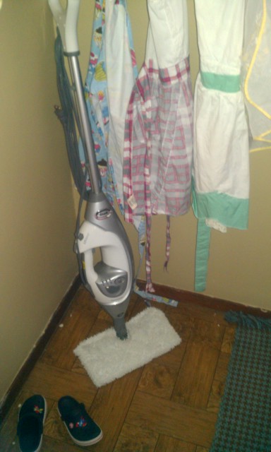 FIRST: together, my Shark Steam Mop and I have conquered the smell of piss that persists in our bathrooms. I thought it was a hopeless battle, but Sharkie and I won.