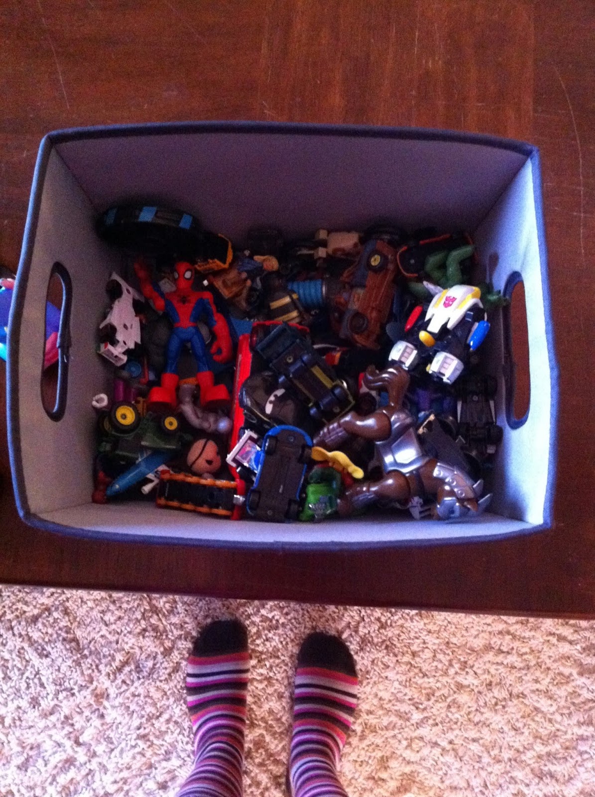 I did a purge before Christmas and a purge afterward too, but my kids have generous people in their lives and honestly they play with almost everything they have. Every time I see a box FULL OF TOYS I think about how there are lots of kids with no toys at all and we need to give more stuff away … so we do … and then the ant-like thing happens where I come home and we seem to have just as much stuff as we had before.