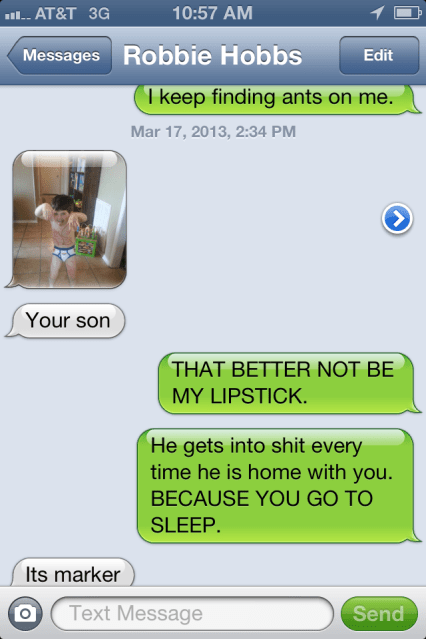 Since Husband and I don’t have a lot of time for idle chat, we communicate via text. For example: