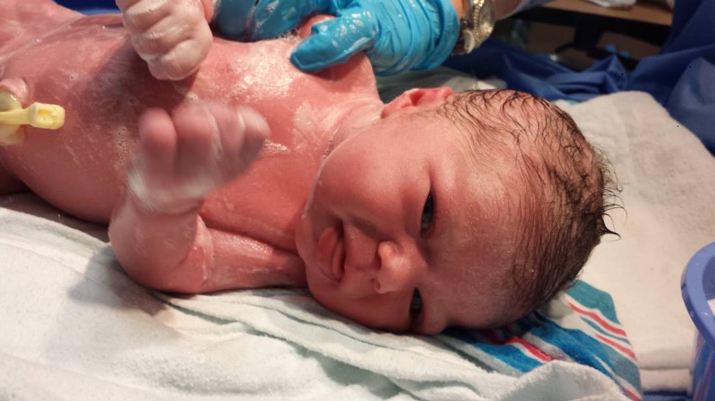 By 10:30, the full round of antibiotics was complete and Dr. Boudreaux said it was fine to have the baby now, so they kicked the pitocin up again. At 1:00 I started to feel pressure, like a baby was literally about to fall out of my vagina and into the hospital bed, and at 1:35 p.m. after three pushes, my daughter was born.