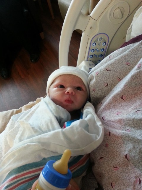 My “birth experience” is kind of a blur, probably because I was so deep in my safe place. Like, deep. When I find myself in situations like childbirth, I check out. I couldn’t read, I couldn’t watch TV, I couldn’t hold a normal conversation. All I could do was sit and wait for the inevitable to happen and try not to freak the freak out. When I was in labor with Maverick in 2008, my nurse called me “stoic,” but actually, I’m just a check-outer. So on Friday, I literally spaced out for 7 hours and tried not to throw up.
